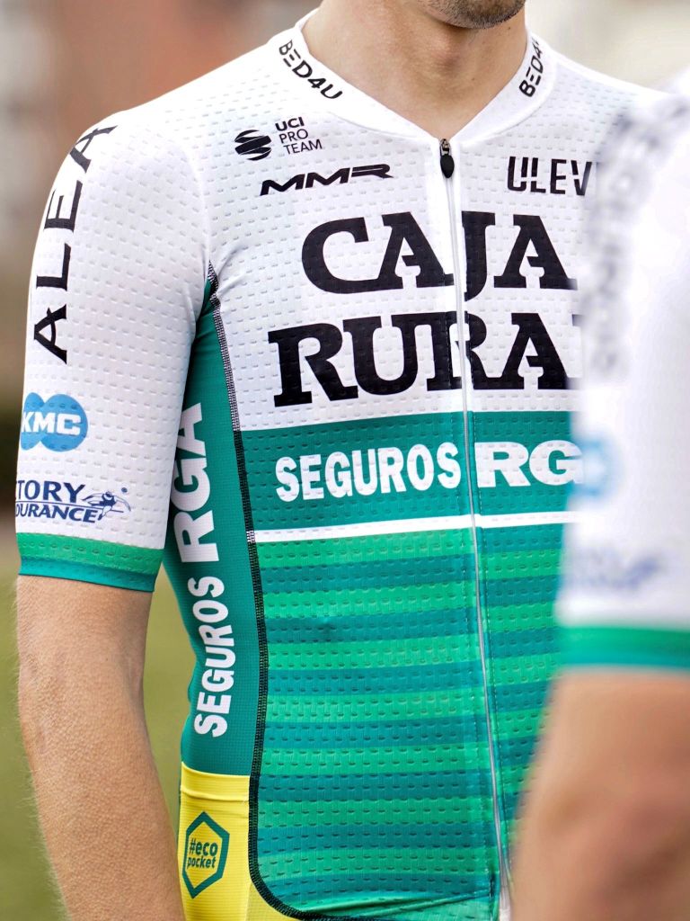 Tampoco cambia el protagonismo principal para Caja Rural y Seguros RGA en pecho y espalda, el logo de KMC en hombros y el de Bed4U Hotels en el cuello. Ulevel, que vuelve a introducir el «Eco Pocket», el bolsillo lateral amarillo en el que conservar los desperdicios de carrera para después arrojarlos en las zonas habilitadas para tal efecto, plasmará estos diseños sobre el maillot Windchannel y el culote Marco para los días en los que acompañe la temperatura y el maillot largo Mika y las chaquetas Tempete y Cyclon durante las jornadas más desfavorables.