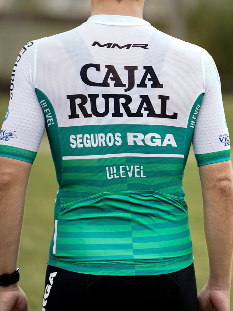 | Línea continuista, aunque con pequeñas modificaciones estéticas, para el segundo año de Ulevel vistiendo a los equipos de Caja Rural-Seguros RGA. La empresa de Almansa ha preparado una equipación en la que el histórico verde y el blanco se mantienen como principales colores y señas de identidad de un equipo que echará a andar en la segunda quincena de enero, concretamente en la Clàssica Comunitat Valenciana. Las principales novedades aparecen en el pecho y en los hombros con la inclusión de MMR y de Victory Endurance, nuevos proveedores de bicicletas y de suplementación y alimentación, respectivamente. Además, se mantiene la relevancia de Alea en el hombro derecho, tal y como se introdujo mediada la pasada temporada. |