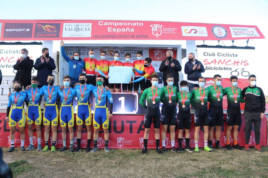 La Selección Gallega se ha impuesto esta tarde en la prueba de Team Relay que se ha disputado en Xàtiva dentro del Campeonato de España de Ciclocross. Su tiempo ha sido de 35 minutos y 33 segundos. Le han acompañado en el podio el combinado del Principado de Asturias y el del País Vasco, que hicieron 25 y 27 segundos más, respectivamente, que los ganadores. Cantabria ha sido cuarta y la Autonómica de la Comunitat ha finalizado quinta, a 41 segundos de los gallegos. De esta forma, Miguel Rodríguez, Irene Trabazo, Samuel González, Ricardo Martín, Tomás Pombo y Andrés Calvante son los seis ciclistas que se colocaran los primeros maillots de campeones de España.