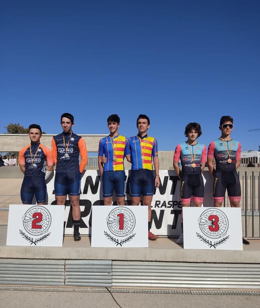 El velódromo Manuel Guijarro de San Vicente del Raspeig ha acogido hoy los Autonómicos de Madison cadete y júnior. En la categoría cadete, Oleg Melnikov y Óscar Orts, del GD Llopis, han sido los vencedores, por delante de Antonio Ramírez y Héctor Domínguez, del JuanGiner, y de Héctor Álvarez (Lucta-Grupo Sime) y de Mateo Mateev (Esetec Pikolinos). En júniors, el triunfo en el campeonato correspondió a Alejandro Merenciano y José Segura, del Infinobras. Y en la categoría sub 23, Joel Villaverde y Abel Olivares, del Esetec Salazones Ricardo Fuentes, fueron los ganadores de la prueba.