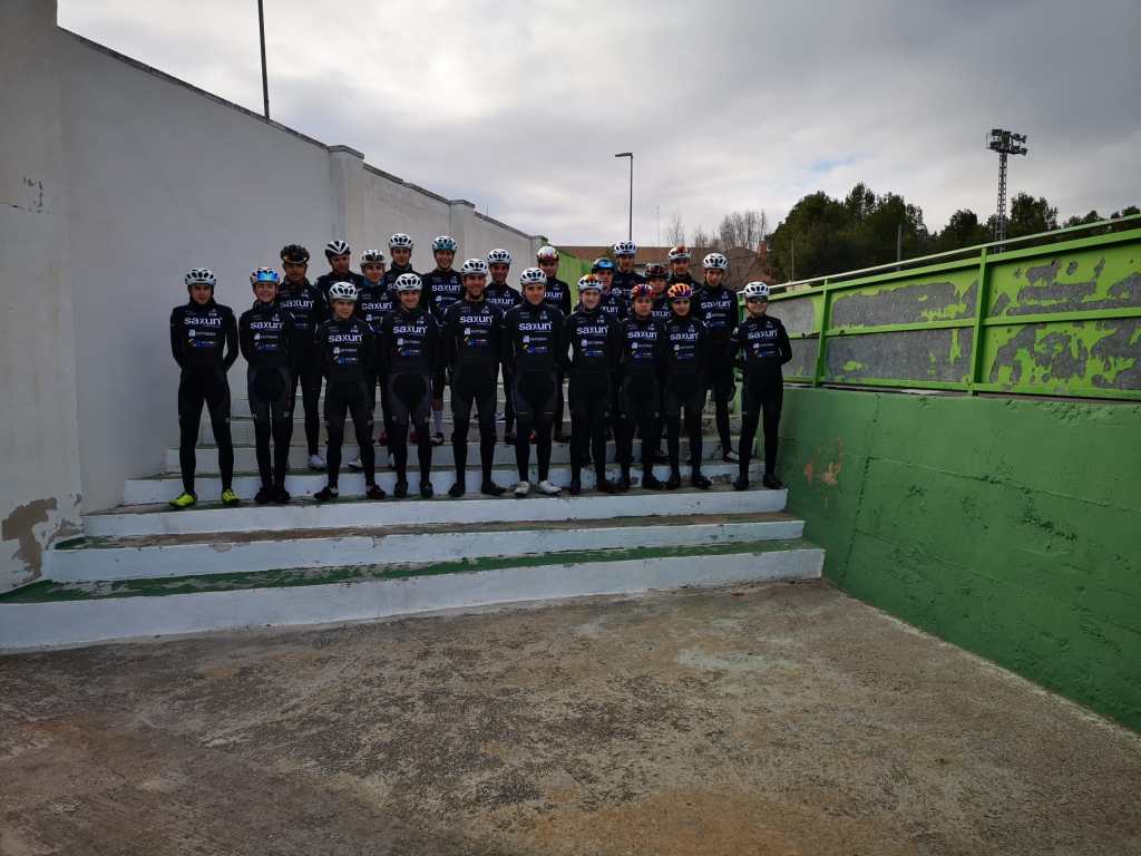 Los equipos cadetes y juveniles del Club Ciclista Sax realizaron el domingo una nueva ruta de entrenamiento grupal preparando la temporada 2022 y aprovecharon la ocasión para estrenar la nueva indumentaria del invierno del equipo diseñada por Gobik y hacerse una foto. La de verano, que es de azul claro, deberá esperar unos meses en el armario hasta que llegue el buen tiempo. Como se recordará, la entidad sajeña pasará a denominarse esta campaña, la 2022, Saxun-Extrusax-Primoti tras pasearse por las carreteras nacionales durante varias campañas bajo la denominación de Giménez Ganga.