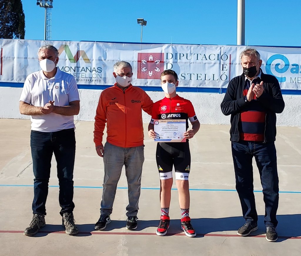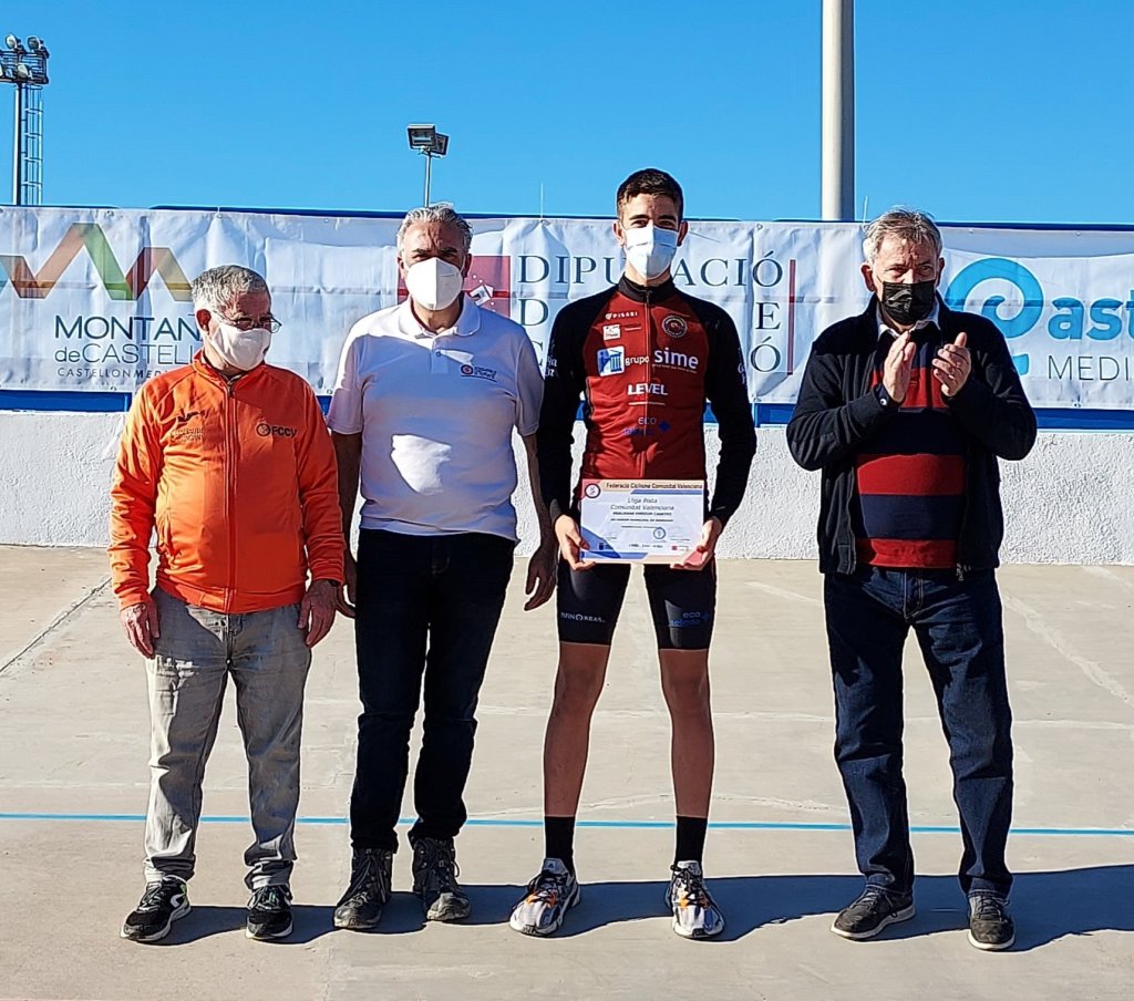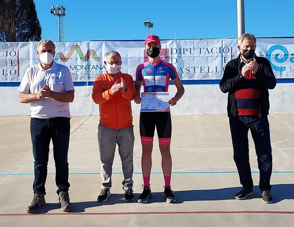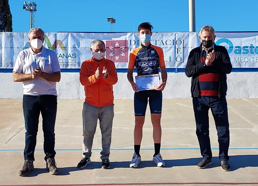 Hoy se ha disputado en el velódromo de Burriana la quinta prueba de la Liga de Pista de la Comunitat valenciana. El máster 30 Gabriel Hernández (Acquabella-Grupo Nexta) se ha impuesto en la carrera ‘open’ a los júniors del Infinobras Alejandro Merenciano y José Segura. En cadetes, Héctor Álvarez (Lucta-Sime) se llevaba el triunfo por delante de Oleg Melnikov (GD Llopis) y de Antonio Ramírez (Juan Giner-Ulevel). En féminas, la victoria fue para Leyre Almena, con Daniela Grañana, segunda, y Leyre Toledo, tercera.