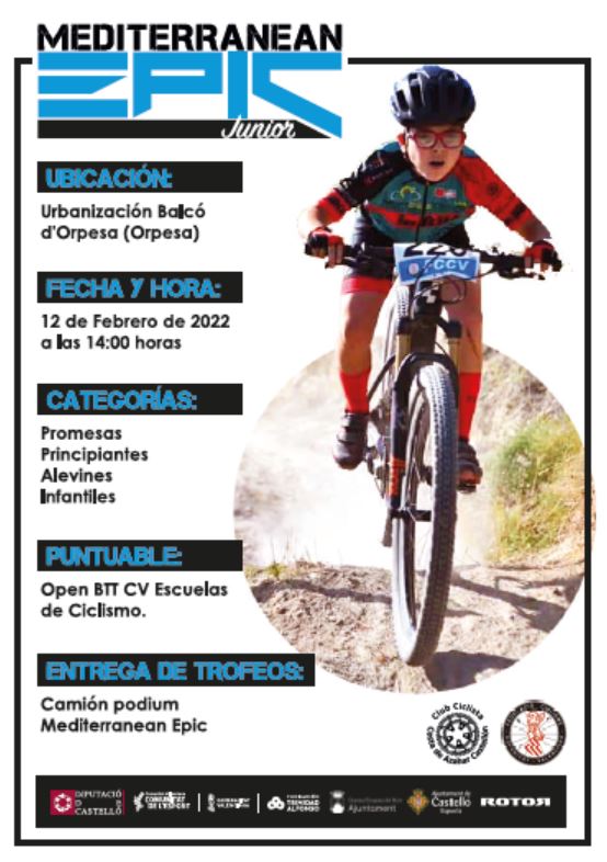 El sábado se disputa en Oropesa del Mar la segunda prueba del Open BTT de Escuelas de la Comunitat Valenciana. La prueba, enmarcada dentro de la Mediterranean Epic que se está desarrollando desde el jueves y finalizará el domingo, comenzará a partir de las 14 horas y está destinados a Promesas, Principiantes, Alevines e Infantiles. La competición, organizada por el CC Costa de Azahar Castellón, contará con 292 participantes.