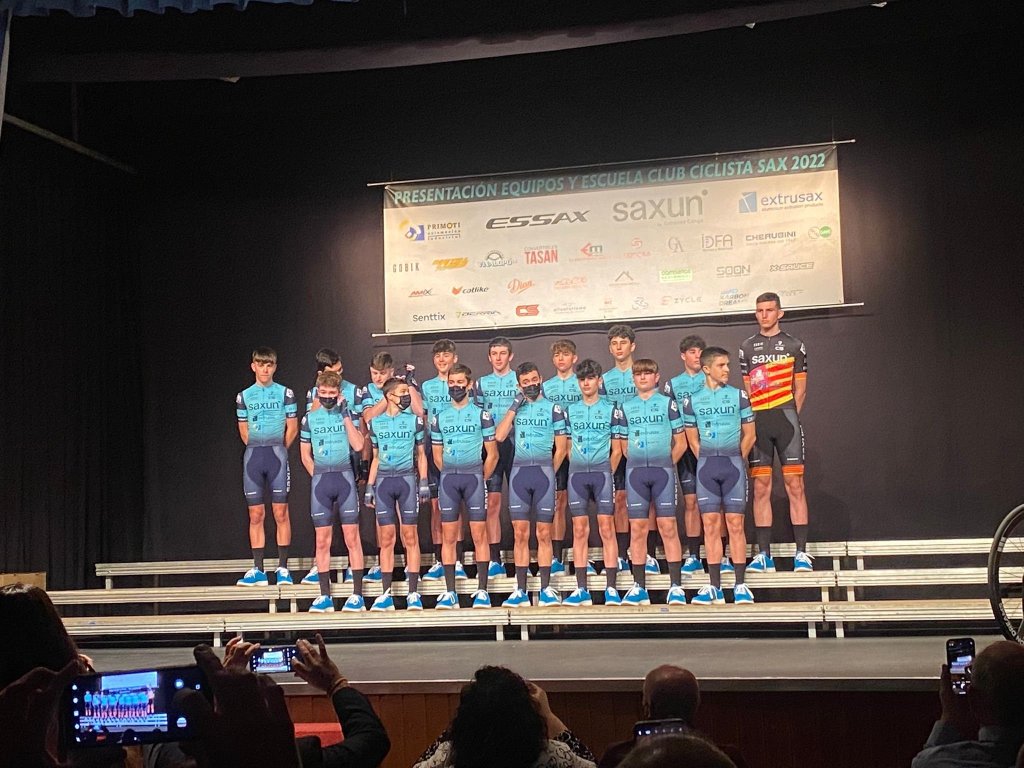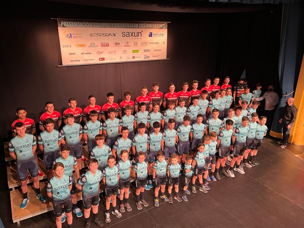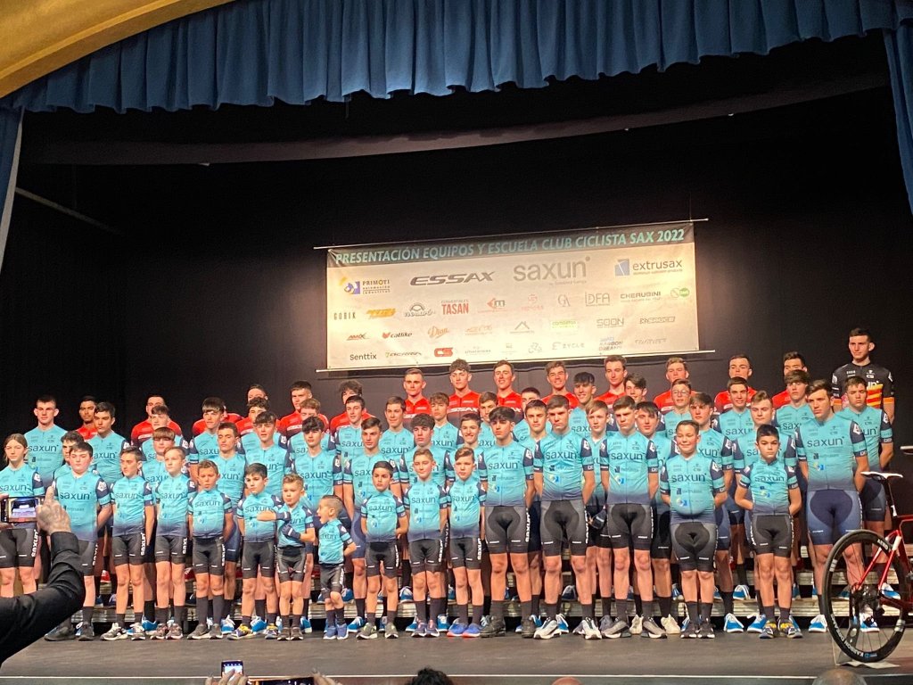La Escuela del Club Ciclista Sax, los corredores cadetes y juveniles de la entidad alicantina, que durante la próxima campaña se denominarán Saxun Extrusax Primoti, además del Equipo Essax, de la categoría amateur, se han presentado hoy en el Teatro Cervantes de Sax en un bonito ambiente en el que los más pequeños se han quedado ensimismados pudiendo estar al lado de los sub 23. Parafraseando a la mítica frase futbolística que aseguraba «No diga gol, diga Kempes», bien se podría decir «No diga ciclismo, diga CC Sax».