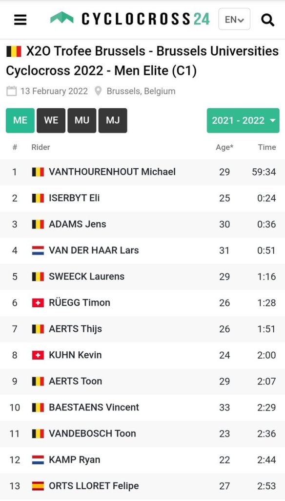 Michael Vanthourenhout ha ganado la última ronda del X2O Bathrooms Trophy en Bruselas. El corredor de Pauwels Sauzen-Bingoal demostró ser, con mucho, el más fuerte en el difícil recorrido del University Cross y ganó por delante de su compañero de equipo Eli Iserbyt. Jens Adams culminó una sólida carrera con un tercer puesto. Toon Aerts es, a pesar de un comienzo desastroso, ganador general del Trofeo X2O.