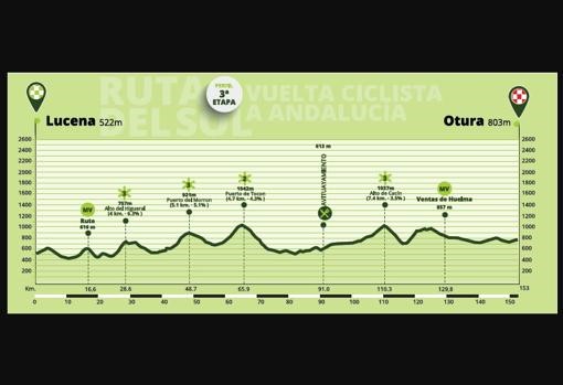 Tercera etapa: Lucena (Córdoba) – Otura (Granada). 153,2 kilómetros. Viernes 18 de febrero. Oportunidad para los velocistas.