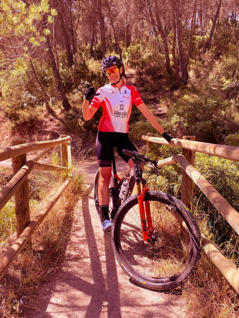 Siempre he practicado deporte y el ciclismo fue como encontrarme a mi misma. Empecé con la modalidad de carretera participando en pruebas cicloturistas, con el que siempre ha sido mi club, el CC Banyeres de Mariola. Más tarde decidí probar con la MTB y al final no se me dio mal, aunque he de admitir que “las piedras” no son lo mío. En 2020 tuve que hacer un paréntesis por motivos personales, y en 2021 volví a competir con Faster, donde me han cuidado como una reina. Fue un año que pintaba genial, nunca pensé que podría llegar tan lejos en tan poco tiempo. Conseguí ser campeona regional de Murcia tanto en XCM como en XCO; una tercera posición en la Volcat UCI (pareja mixta); liderato en el Open de España XCUM en La Iruela (Cazorla); y una tercera posición en una prueba tan exigente como el Gigante de piedra Small… Hasta que de repente, cuando todo parecía que iba viento en popa, a las puertas de disputar los Campeonatos de España de XCM/XCO, sufrí una caída y me fracturé de clavícula. Una lesión que me ha tenido más de seis meses parada, aunque eso ya forma parte de mi pasado. Ahora mi ilusión es aprovechar al máximo la oportunidad que me brinda PAFGIO de formar parte de su equipo Élite Femenino. Agradecer también al CC La Palma y colaboradores como ESETEC o Salazones Ricardo Fuentes que apoyan firmemente al ciclismo femenino.