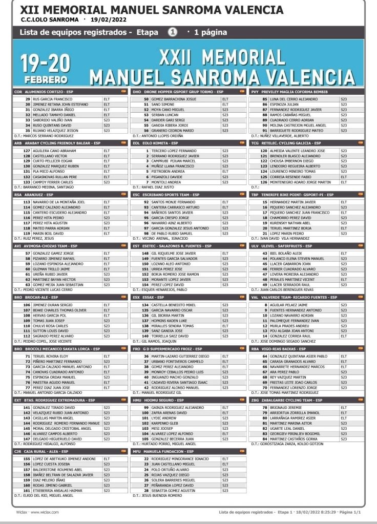Miguel Juan disputará su primera carrera con el Manuela Fundación, al igual que Alejandro Gómiz, con el Super Froiz, tras correr la pasada campaña en el Netllar Alé. Gómiz ha estado concentrado con su equipo en tierras gallegas. También se pondrán el dorsal los corredores del Esetec Javier Morante, José Javier Gil y Antonio Lozano. Abel Olivares y Joel Villaverde están con la Selección Autonómica de la Comunitat en Mallorca para disputar este fin de semana el Campeonato de España de Madison y Ómnium.
