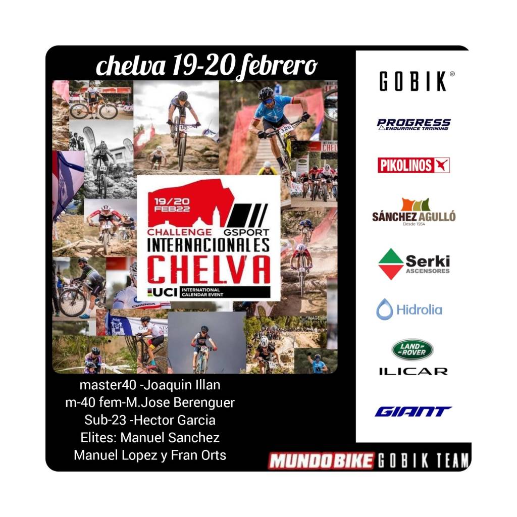 Un año más Chelva será el punto de partida donde arranque el año XCO de alto nivel, del 19 al 20 de febrero se celebrarán los Internacionales XCO Chelva GSPORT Challenge, y lo hará con una parrilla de lujo en la que estarán Henrique Avancini, Vlad Dascalu, David Valero, Evie Richards, Jolanda Neff o Pauline Ferrand Prevot, entre otros. En la parrilla casi 900 inscritos, 25 equipos UCI y más de un centenar de corredores internacionales. El sábado se disputará como antesala una prueba del Open BTT Escuelas, el International Kids by Sambori, con la presencia de 329 inscritos y la presencia de las escuadras de Alicante.
