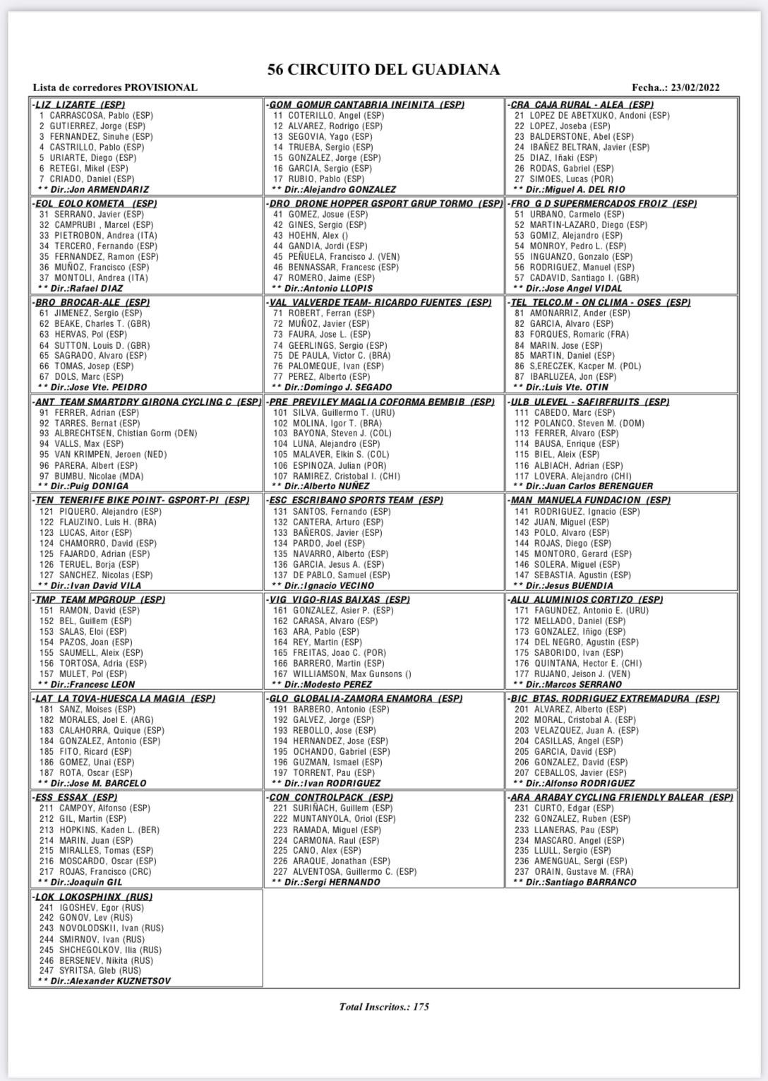 El equipo sajeño competirá con Alfonso Campoy, Martín Gil, Kaden Hopkins, Juan Marín, Tomás Miralles, Óscar Moscardó y Gabriel Rojas, en lo que supondrá el debut del ciclista costarricense, actual campeón Panamericano de ruta con los colores del equipo. Por su parte, lo alcoyanos estarán en la salida con Sergio Jiménez, Charly Beake, Álvaro Sagrado, Josep Tomàs, Louis Sutton, Marc Dolçs y Pol Hervás. Junto a ellos estarán Miguel Juan (Manuela Fundación), Josué Gómez (Drone Hopper Gsport), Alejandro Gómiz (Froiz) e Iván Palomeque (Valverde), que ya debutó como sub 23 la pasada semana en el Memorial Sanroma. «No tuve las mejores sensaciones, pero es normal tras el parón que tuve por lesión. De todas formas, pude acabar en el puesto 25 en la general, en un terreno que no era el mío, y estoy contento», afirma el benidormense.