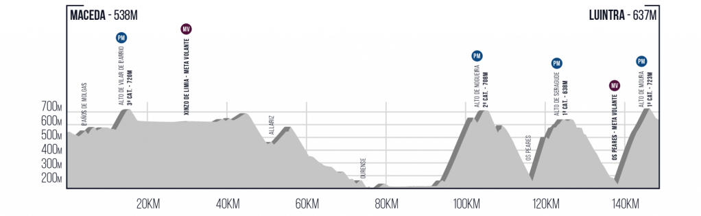 El escenario será la Ribeira Sacra, superando los altos de Noguera (2ª), Seragude (1ª) y Moura (1ª) justo antes de la meta en Luintra.