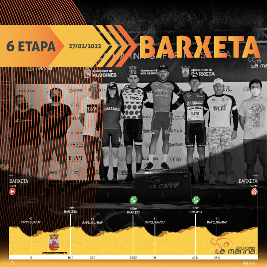 La Volta La Marina regresa este domingo a Barxeta donde, a partir de las diez, se disputará la sexta etapa con el clásico circuito de 17 kilómetros al cual se darán 4 vueltas para totalizar poco más de 66 kilómetros. En el segundo y el tercer paso por meta estarán situadas las dos metas volantes del día.