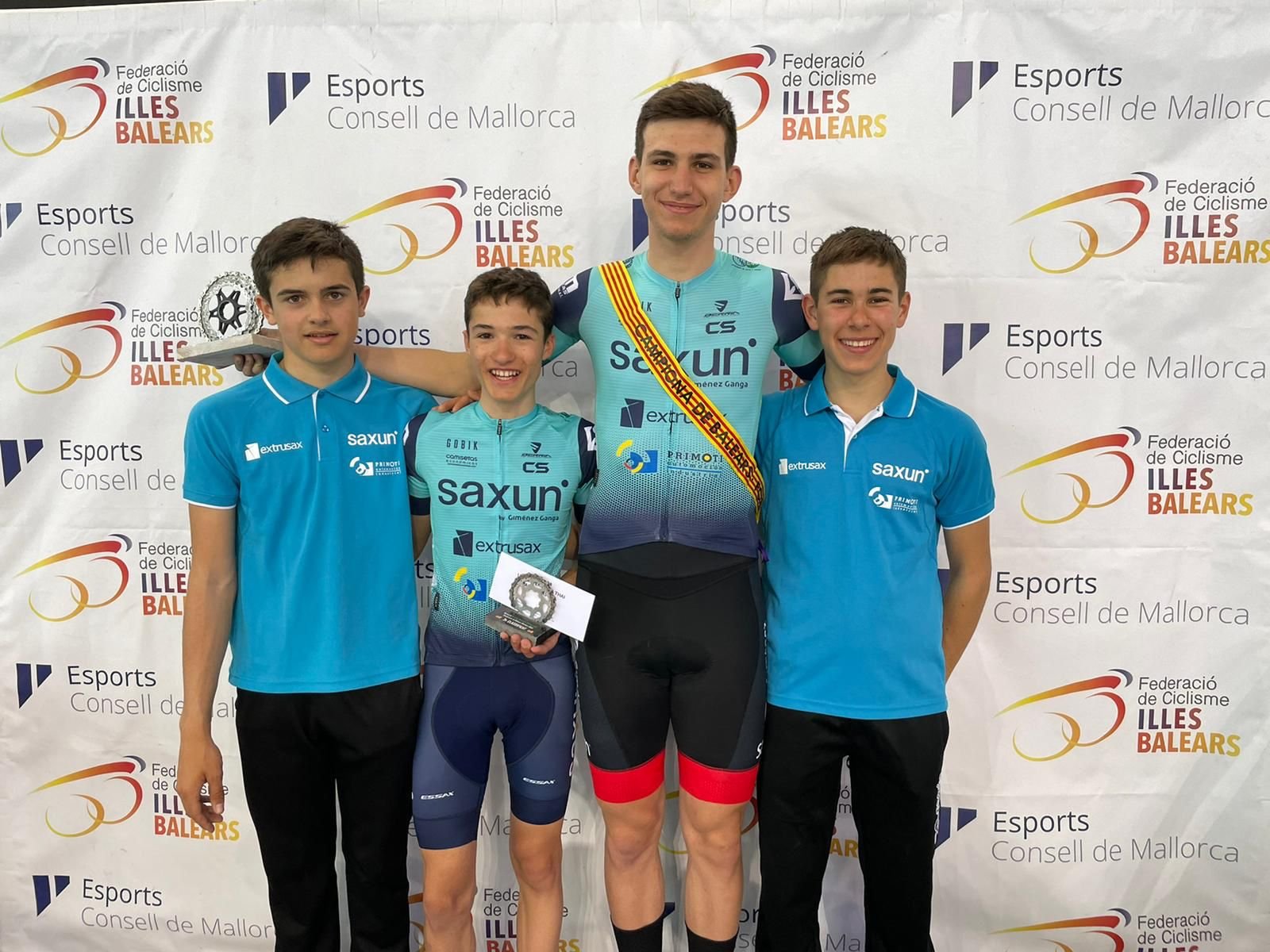 El corredor del Saxun Extrusax, Martí Mir, se ha proclamado esta mañana campeón de Baleares de ómnium. Martí ha dominado el Memorial Antonio Abraham-Gran Premio Hiermar tras imponerse en scratch y eliminación, ser segundo en la prueba de tempo, y ganador de todos los sprints menos uno en la puntuación. Ello se tradujo en 141 puntos, frente a los 120 de Joan Roca (Mancor de la Vall) y los 115 de su compañero de escuadra Ferrán Prats (Saxun-Extrusax). Los también corredores del equipo sajeño Lluc Dolçs y Martí Mulet han finalizado en cuarto y sexto lugar, respectivamente.