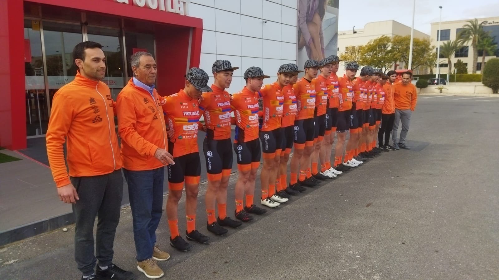 El grupo realizó dos entrenamientos en carretera: Uno de 90 kilómetros, con la ascensión al Maigmó, y, el segundo, de unos 50, desde Petrer a Elche, para visitar gran parte de las empresas patrocinadoras y hacer la tradicional foto de equipo.