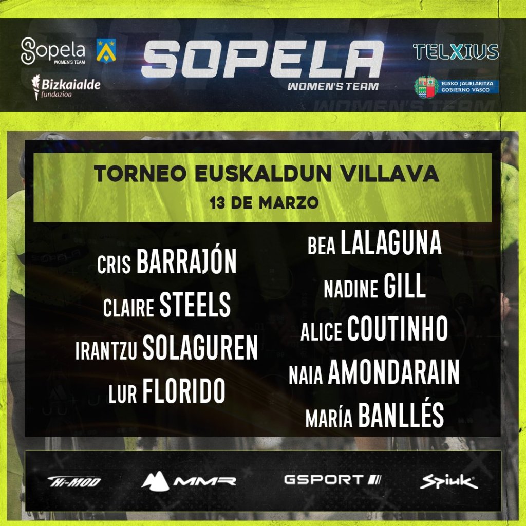 Disputarán la prueba Lur Florido, Irantzu Solaguren, Bea Lalaguna, María Banllés, Naia Amondarain, Cristina Barrajón, Nadine Gill, Alice Coutinho y Claire Steels.