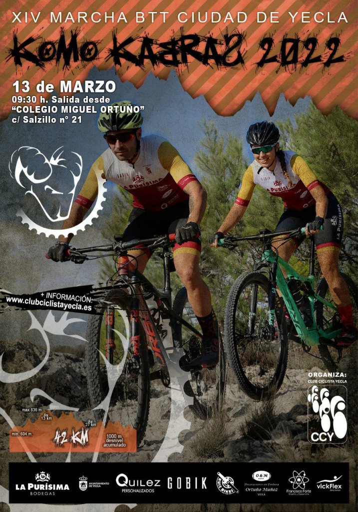 Hoy domingo, 13 de marzo, se disputa la XIV Marcha BTT «Ciudad de Yecla» «Komo Kabras 2022» con la presencia también de bikers alicantinos. Entre otros estarán, a partir de las 9.30 horas, Fran Orts y J. J. Quiñorero del Mundobike.