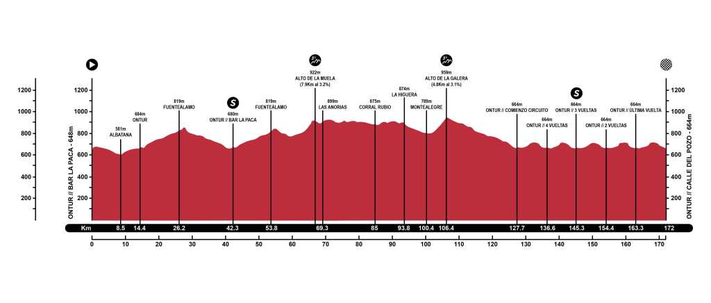 Se encadena la subida a La Galera y la carrera regresa a Ontur (meta volante km 146) para completar las cinco vueltas finales con la subida al pantano para estirar el grupo y limar las fuerzas de los esprinters. Tras una rapidísima última bajada, los últimos 500 metros pican ligeramente hacia la meta y decidirán al vencedor del GP Primavera 2022.
