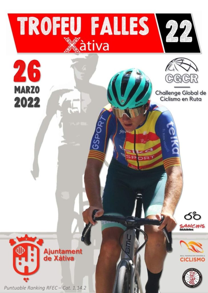 El II Trofeu Falles de Xàtiva, prueba de ruta para categoría junior prevista inicialmente para el próximo 26 de marzo, ha sido aplazado. La organización, a cargo del CC Bicicletes Sanchis, ya trabaja en la búsqueda de una nueva fecha para la carrera.