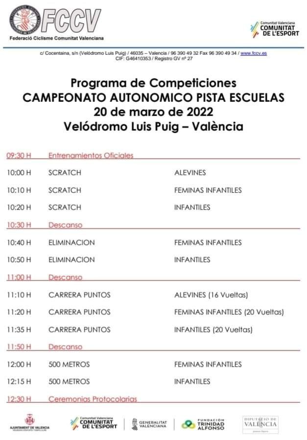De esta manera la Liga tendrá pruebas de keirin, tempo, eliminación y kilómetro/500 y se programarán después de las de infantiles y alevines que el domingo también disputan el Campeonato de la Comunitat Valenciana de Escuelas, con un total de 44 inscritos. Preinscritos