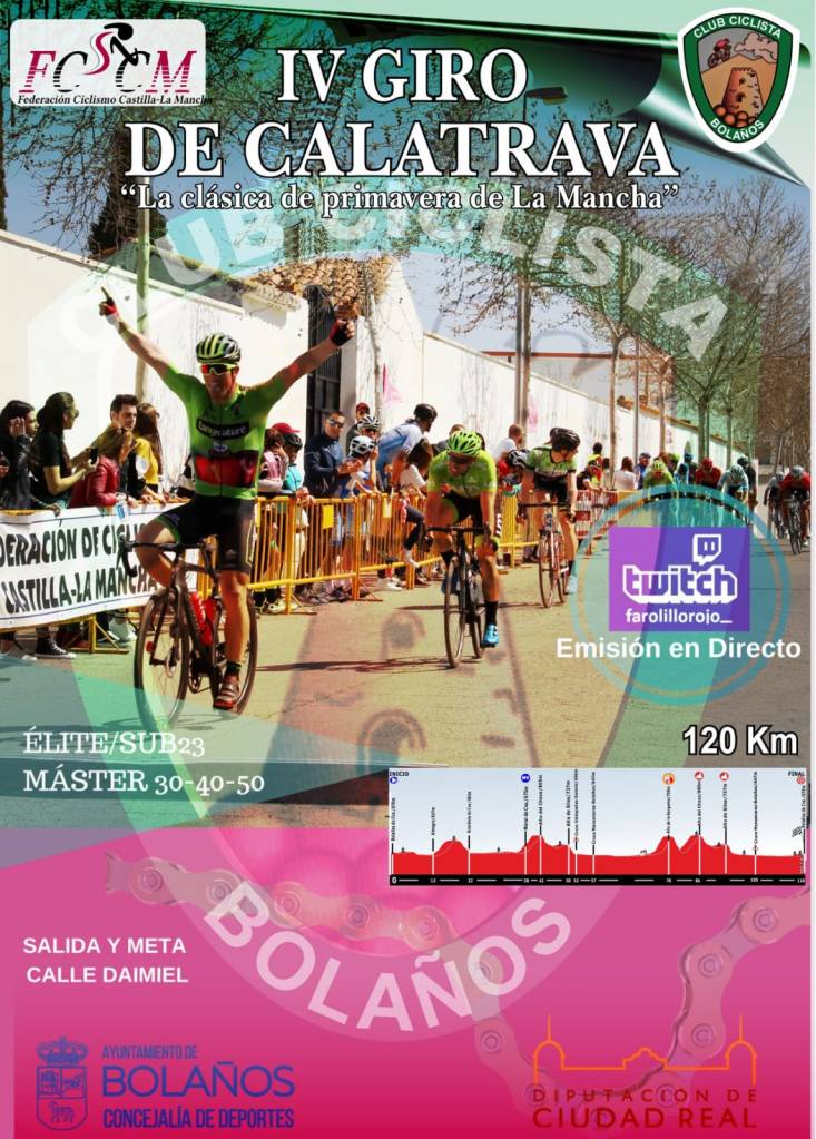 Antonio Baile (Aranjuez) acude a Bolaños el domingo para disputar el Giro de Calatrava. La carrera comenzará a las 10 de la mañana, con salida y llegada en la calle Daimiel. En total, 120 kilómetros y paso por los términos de Almagro y Granátula. Los ciclistas cruzarán por las calles del Moral, donde estará ubicada la Meta Volante, puntuable al primer paso (Km. 35). Las dificultades montañosas se encontrarán en las subidas al Alto del Chozo, al Alto de Siles y al Alto de la Garganta, de 750 metros, donde estará ubicado el único Premio de Montaña puntuable de la jornada (Km. 75).