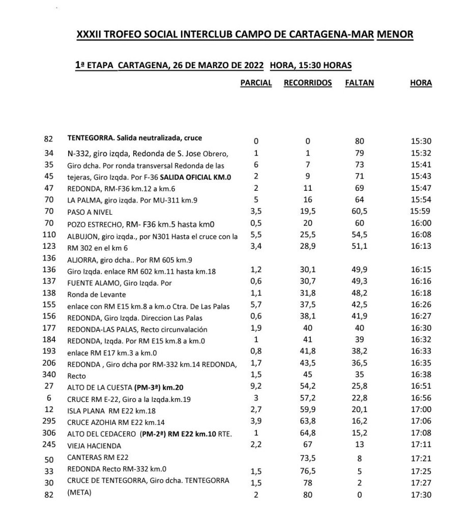 26/03/22 15.30 Cartagena. 80 km. 15.30 horas.