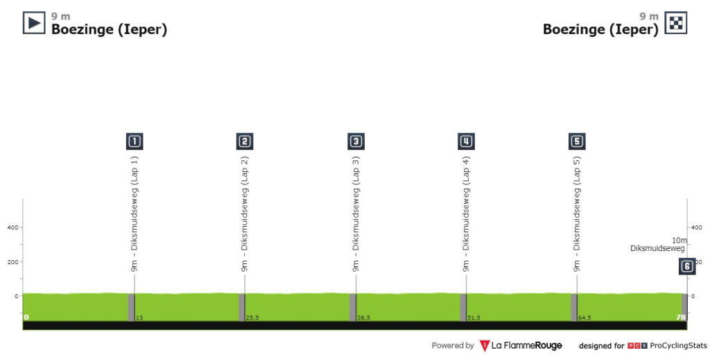 La Gent-Wevelgem, que volverá a disputarse en categoría inferiores después de dos años de ausencia por la pandemia, propone para las junior féminas un recorrido de 77,5 km compuesto por cinco vueltas a un circuito de 12,9 km que únicamente contendrá un tramo de pavés. La salida se dará a las 11:45 horas de la mañana y está previsto que concluyan entre las 13:45 h y las 14:00 h.