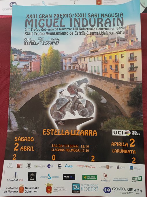 Alejandro Valverde (Movistar Team), último ganador en Estella volverá a estar el próximo 2 de abril en Gran Premio Indurain. ¿Será capaz de lograr su cuarto triunfo?. Lo consiguió en las ediciones de 2014, 2018 y 2021. También lo han ganado en tres ocasiones Hortensio Vidaurreta (1951, 1952 y 1953), Miguel María Lasa (1971, 1974 y 1978), Juan Fernández (1979, 1980 y 1983), y Ángel Vicioso (2001, 2002 y 2015).