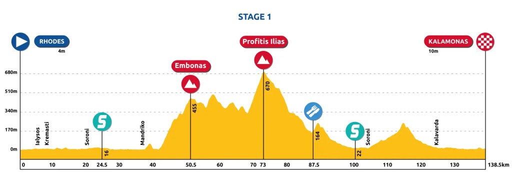 Etapa 1/Viernes 25 de marzo. Rhodes-Kalamonas. 138,5 kilómetros