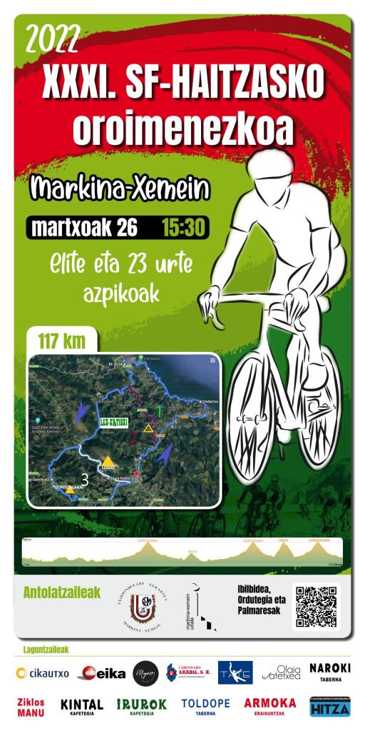 La primera de ellas, el XXXI Memorial Sabin Foruria de Markina-Xemein, tendrá lugar en la tarde del sábado a partir de las 15.30, con una jornada de media montaña, en el que se enlazarán tres duras subidas ya dentro de los últimos 40 kilómetros de los 117 que ha diseñado la organización. Ya el domingo tocará la Subida a Gorla cogerá el testigo