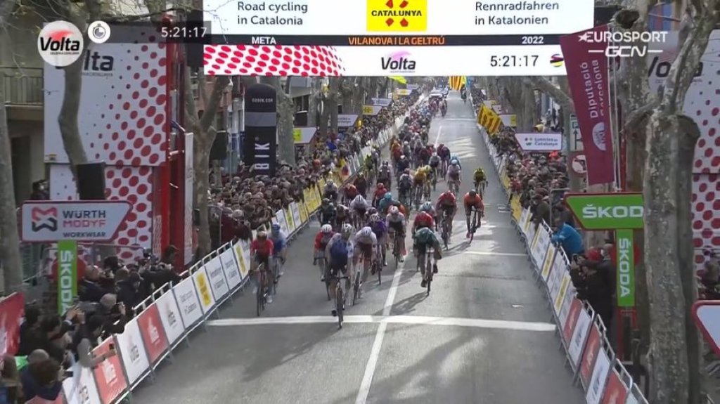La Volta a Catalunya volvió a ofrecer un perfil ideal para los veloces. Y es el joven británico Ethan Vernon (Quick-Step Alpha Vinyl) el que se llevó el gato al agua en Vilanova i la Geltrú (Barcelona), en la quinta etapa de ronda catalana. Firmó su primera victoria profesional por delante de Phil Bauhaus (Bahrain-Victorious). Manuel Peñalver (Burgos BH) ha sido séptimo. Viento de cara, viento lateral… y una gran velocidad en la parte final. Manuel Peñalver volvió a mostrar su gran capacidad en los metros finales para meterse al top-10 de la etapa. El torrevejense confesaba al final de la jornada: «Volvemos a sacar un gran resultado después de una llegada muy muy loca y muy ratonera. Me quede encerrado en los últimos 400 metros al coger la rueda del ganador del otro día (Groves) y ya fue tarde cuando salí, pero firmamos un gran resultado de nuevo con los WorldTour. Agradecer a todo el equipo por el grandísimo trabajo que han hecho de estar siempre, pendientes de mí, y la confianza que me han dado. Pronto llegará la victoria, no tengo ninguna duda».