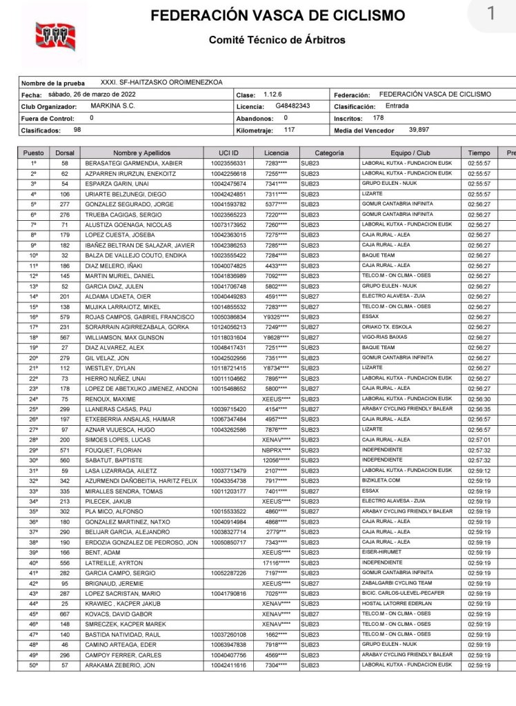 El domingo, se disputa la mítica Subida a Gorla, de 130,5 kilómetros de recorrido. El equipo Essax competirá con Mikel Castellá, Alfonso Campoy, Óscar García, Martín Gil, Kaden Hopkins, Tomás Miralles y Gabriel Rojas. Jaume Guardeño (Filial Caja Rural) también estará en la salida.