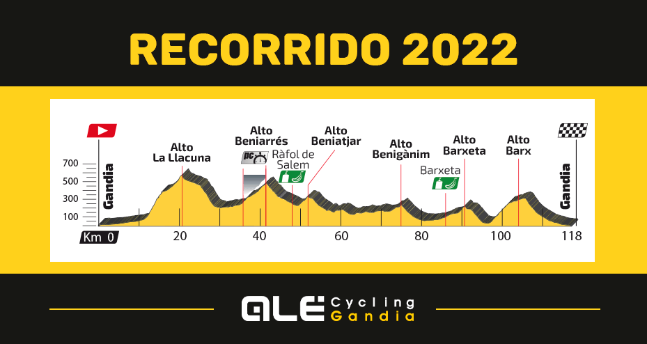 Del domingo, día 3 de abril del 2022, se disputa la Marcha Internacional “ALE Cycling Gandia by SLT”, prueba incluida en el calendario UCI y organizada un año más por SLT Sport. Una novedad de este año, es que se van a realizar dos salidas, la primera, a las 8:00h y la segunda a las 8:30h. En el mismo momento de la inscripción se elegirá un horario u otro, pero este no es obligatorio ya que el control se realizara mediante chip el mismo día de la prueba.