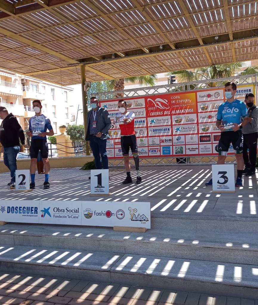 La localidad almeriense de Cuevas del Almanzora ha dado hoy el banderazo de salida a la Copa de España de Ciclismo Adaptado. Una contrarreloj individual en la que Carlos Sarrías (CD Para-Sport Andalucía) ha sido segundo en la categoría MC1 por detrás de Ricardo Ten (Hyundai Koryo Car). La tercera plaza ha sido para Carlos Javier Mozos (Fundación Alberto Contador). Por escuadras, el CD Para-Sport Andalucía, ha finalizado tercero. «Ha sido una crono larga de 24 kilómetros que compaginaba una larga recta por recorrido urbano con una curva de 90 grados que se me hacía muy difícil afrontar. Al final estoy satisfecho con la media sacada y, ahora, a pensar en la prueba en el domingo».