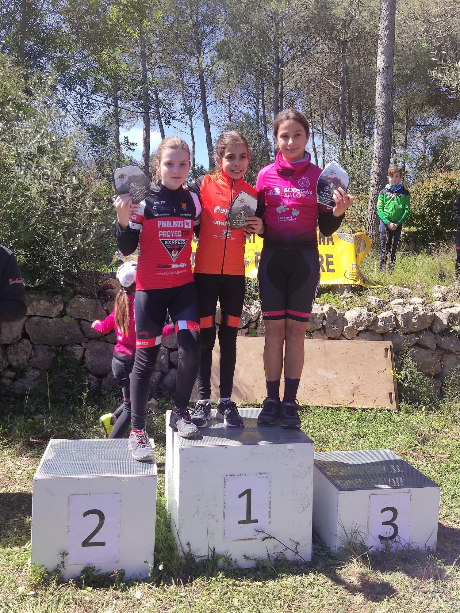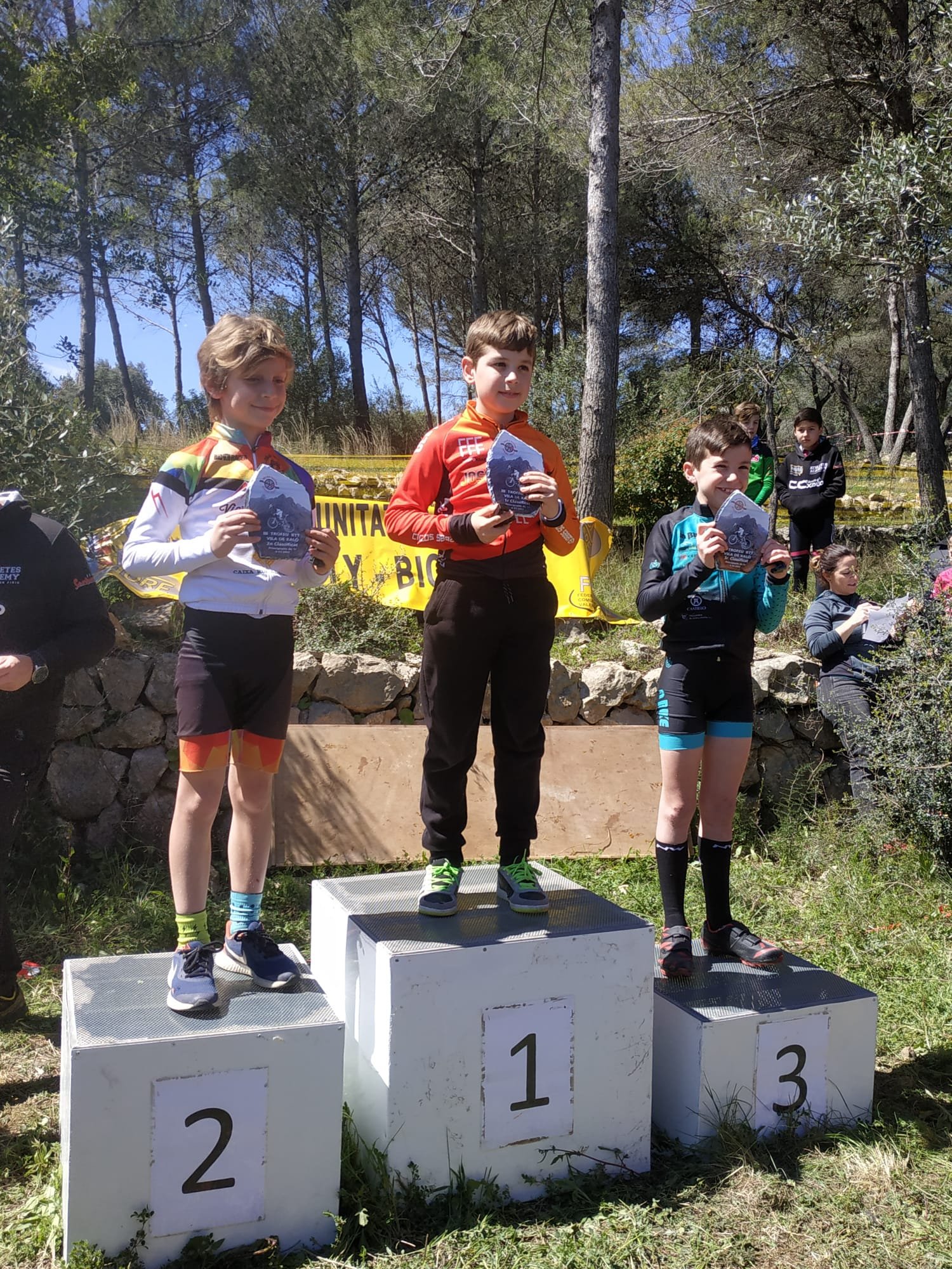 El III Trofeu BTT Vila de Xaló ha reunido esta mañana a 190 escolares. Unai Chalmeta (Víctor Cabedo) y Martina Cano (AM Sonido) se han impuesto en Promesas 1; Darío Castillo (Crevillent) y Vera Fullana (Bernia Xaló), en Promesas 2; Iker Hiraldo (José Sabater) y Claudia Casares (Vall d´Uxó), en Principiantes 1; Javier Delegido (José Sabater) y Valeria Coloma (AM Sonido), en Principiantes 2; Gonzalo Muñoz (José Sabater) y Ainhoa Cano (AM Sonido), Alevines 1; Pere Fullana (Bernia Xaló) y Adriana Segura (Almoradí), en Alevines 2; Álex García (Víctor Cabedo) y María Ivars (Bernia Xaló), en Infantil 1; Jordi Sánchez (Grupo Dos Rodes) y Noa Alderete (Jávea), en Infatiles 2.