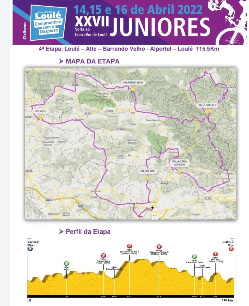 Etapa 4. Sábado. 16 de abril. Loulé-Alte-Barrando Velho-Alportel-Loulé. 115,5 kilómetros