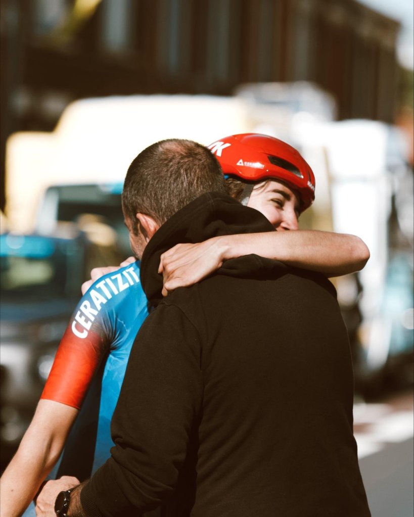 El meta resultó emocionante su abrazo con su técnico, Juan Francisco Andreu, que poco a poco le ha ido metiendo en su cabeza que paso a paso está capacitada para llegar a la cima del ciclismo femenino e incluso para ganar ese trofeo con forma de adoquín que certifica que se ha ganado en el velódromo de Roubaix. Una prueba que cuenta con un patrimonio propio de adoquines que la convierten en una metáfora del sufrimiento como paso premio alcanzar la gloria en el ciclismo.