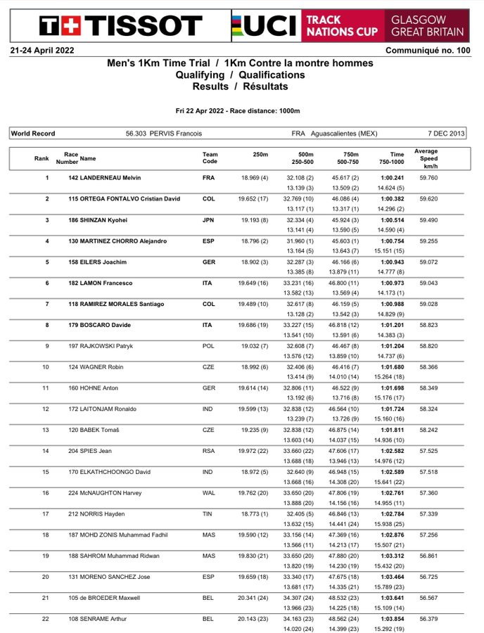 Gran actuación de Alejandro Martínez en la clasificatoria del Km CRI de la Copa de las Naciones de Glasgow. Ha finalizado cuarto. El pistard de San Vicente ha hecho marca personal, con 1’00″754, y peleará por las medallas esta tarde. El alicantino se muestra optimista y contento y considera que «si recupero bien, esta tarde puedo dar mucha guerra».