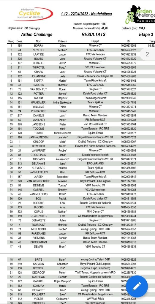 Gilles Borra (Minerva Continental) ha sido el ganador de la tercera etapa del Van Rysel-Arden Challenge que se ha disputado en los alrededores de Neufchâteau. Se ha pedaleado durante 134,4 kilómetros, repartidos en tres vueltas a un circuito. Martin Tjotta (Ringerikskraft ), noveno en la jornada de hoy, se mantiene de líder.
