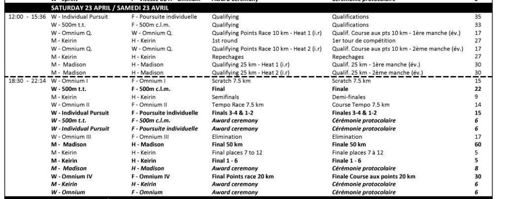 Hoy sábado, en el tercer día de competición, la Selección Española contará con la participación de Helena Casas en el 500 m CRI, de Tania Calvo en el Omnium, de Laura Rodríguez e Isabella Escalera en la Persecución Individual, de Pepe Moreno y Alejandro Martínez en el Keirin y de Sebastián Mora y Erik Martorell en la Madison.