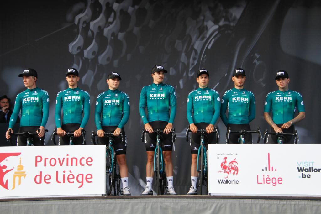 Emocionado se acostó Eugenio Sánchez junto as sus compañeros del Equipo Kern Pharma el sábado en un hotel a los pies de La Redoute y todavía más excitados se despertaron el domingo, preparados para la gran aventura que tenían por delante. La Liège-Bastogne-Liège (Bélgica, UCI 1.UWT, 24/04) les recibió por primera vez con un recorrido y una afición espectaculares. El alicantino y el resto de corredores de la escuadra navarra cumplieron con el objetivo marcado: filtrarse en la fuga del día. Pau Miquel lució el verde farmacéutico en cabeza de carrera hasta ser absorbido por el pelotón, que llegó a Lieja cortado por una caída masiva en la que se vio afectado Kiko Galván, pero que no le pidió cruzar la línea de meta, donde se impuso en solitario Remco Evenepoel (QST). Quinten Hermans (Intermarché-Wanty-Gobert) y Wout van Aert (Jumbo Visma) entraron segundo y tercero, a 48″s.