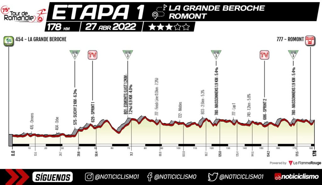 El miércoles, la etapa 1 llevará a los ciclistas desde La Grande Beroche hasta Romont (178 km) por un recorrido montañoso.