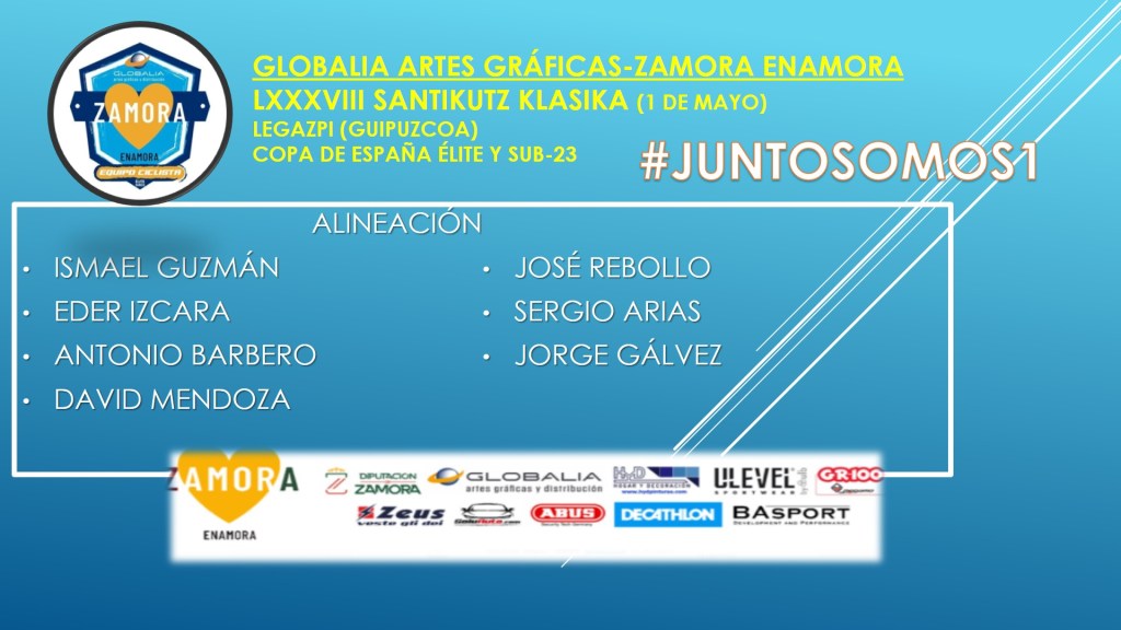 Dureza y mucha exigencia la que le espera este domingo a los siete elegidos para defender los colores del Globalia Artes Gráficas-Zamora Enamora en la Santikutz Klasika de Legazpi, que será la última cita en tierras vascas de esta Copa de España élite y sub-23. Los pupilos de Iván Rodríguez buscarán ser protagonistas por tercera vez seguida en la competición nacional tras los soberbios papeles realizados en el Memorial Valenciaga de Eibar y en el Memorial Ángel Lozano de Valladolid.