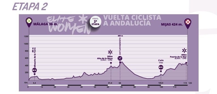 Aprovechando el paso por el Puerto de Arenas, arrancó Mavi García (UAE). Trató de seguirla la colombiana Paula Patiño (Movistar), pero fue su compañera Sierra quien logró alcanzarla para jugarse el triunfo en un mano a mano tras coronar el paso de montaña.
