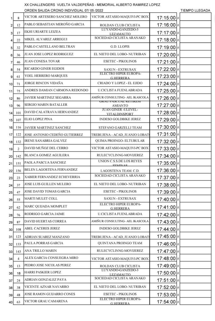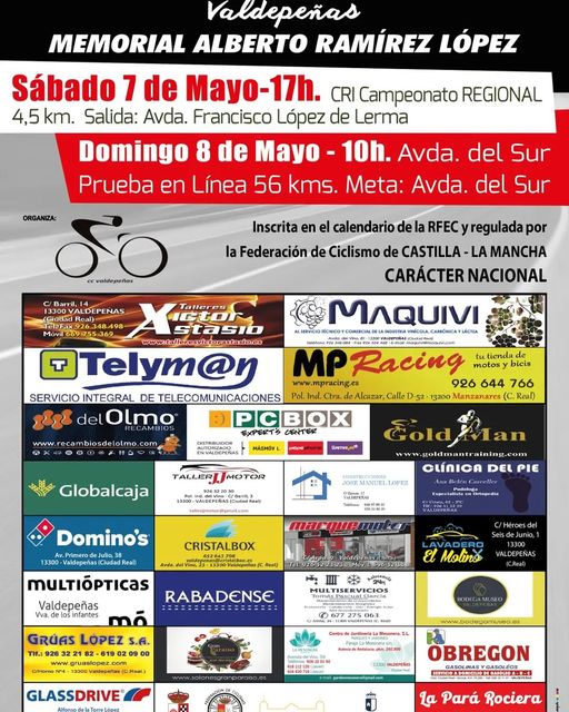 Este fin de semana, los días 7 y 8 de mayo. se disputa el XX Challenge Valdepeñas-Memorial Alberto Ramírez para ciclistas cadetes. El sábado está diseñada una contrarreloj individual de 4,5 kilómetros de recorrido y el domingo, una etapa en línea, de 56. Estarán en la línea de salida las escuadras alicantinas Saxun, GD Llopis y Esetec Pikolinos. También la cadete Lucía Rodríguez, con el maillot del Hyundai Koryo.
