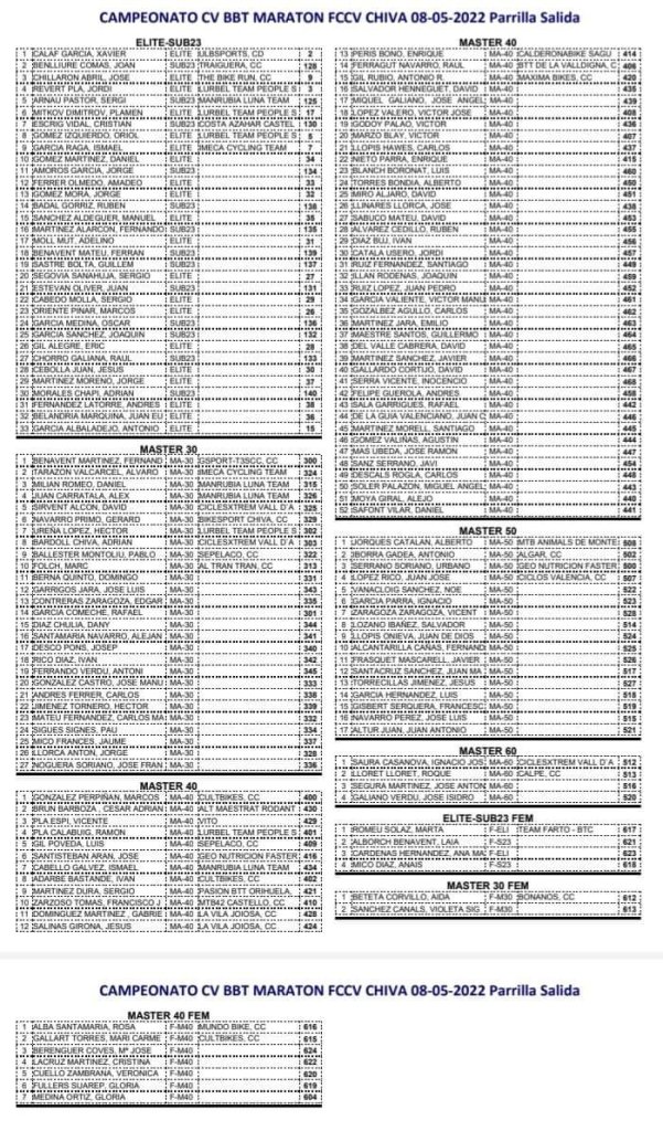 Destacar la presencia en la parrilla de salida de Manuel Sánchez Aldeguer. El biker ilicitano regresa a la competición después de que debido una caída, a principios de marzo en los Internacionales XCO de La Nucía se fractura el dedo meñique y se viera obligado a pasar por primera vez por el quirófano.