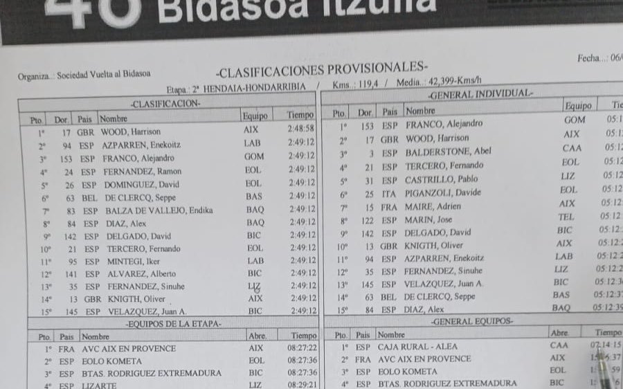 Harrison Wood (AVC-Aix en Provence) ha sido el ganador de la segunda etapa de la Bidasoa Itzulia que ha llevado al pelotón de Hendaia a Hondarribia tras 119 kilómetros de recorrido. Alejandro Franco (Gomur) sigue de líder.