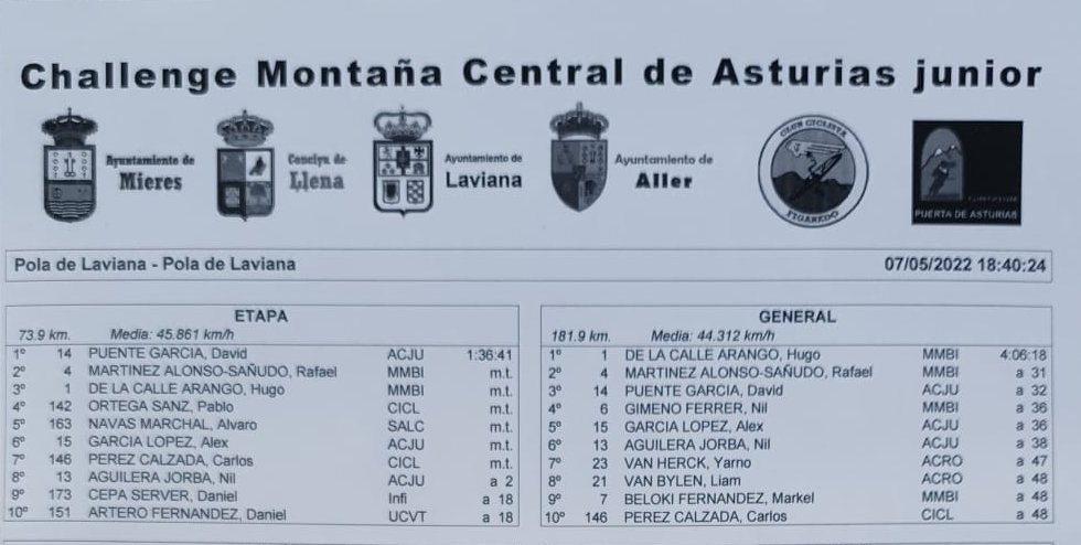 El cántabro David Puente (Fundación Contador) confirmó su gran momento de forma anotándose el triunfo en las calles de Pola de Laviana en el segundo sector de la etapa 2 de la Challenge Montaña Central de Asturias de júnior. Puente fue el más rápido en el pequeño grupo cabecero que alcanzó la última recta. Su tiempo fue 1:36:41. Rafael Martínez entró segundo y Hugo de la Calle, tercero, que continúa de líder. Daniel Cepa (Infinobras) ha terminado noveno.