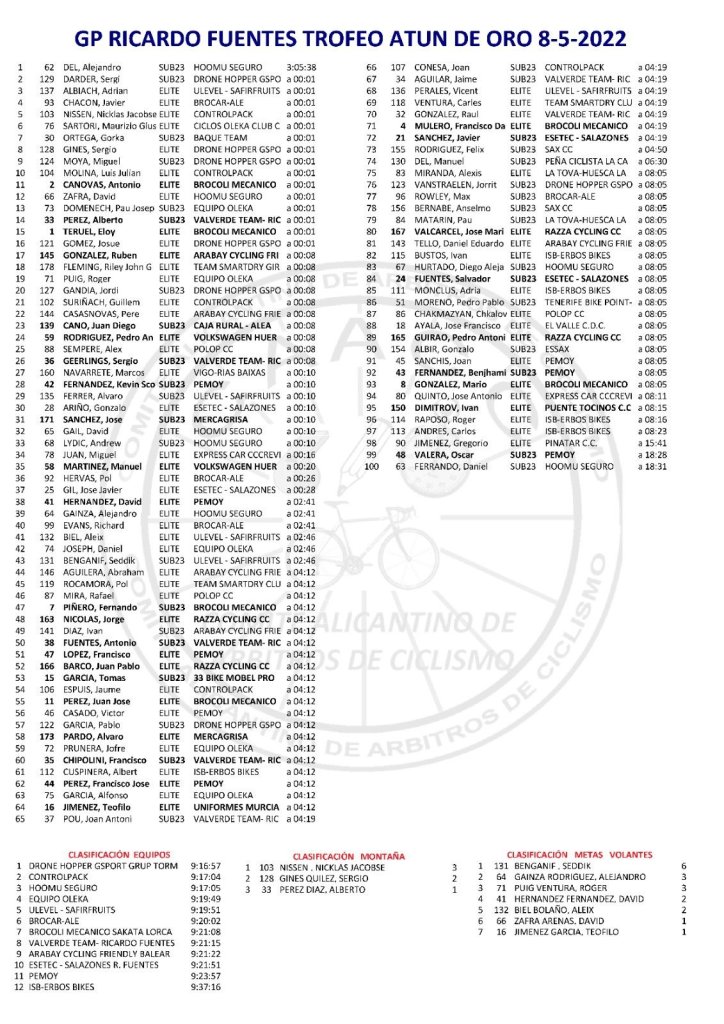 Javier Chacón: «La batalla ha sido constante durante toda la jornada. A falta de 15 kilómetros nos hemo ido un grupo de doce unidades con el líder pisando los talones. Al final le he sacado los segundos necesarios para hacerme con el maillot amarillo. La verdad es que estoy muy orgulloso con el triunfo y con el trabajo realizado por el equipo. Es la primera general por etapas que se queda para el Brocar Alé. Toca seguir trabajando duro con el fin de que lleguen más triunfos».