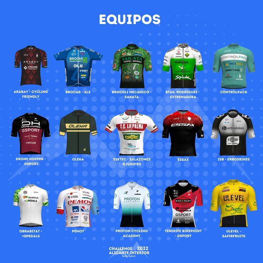 El número de inscritos roza los 200 ciclistas y en la lista de equipos que participarán en ambas carreras están los alicantinos Brocar Alé y Essax, que tratarán de ser profetas en su tierra. En el pelotón estarán además: Arabay (Mallorca); Brócoli Mecánico, Pemoy y Esetec Ricardo Fuentes (Murcia); Team Bicicletas Rodríguez (Extremadura); ISB-Erbos Bike, Obrabitat, Controlpack, Proton Cycling y Oleka (Cataluña); Drone Hopper Gsport (Galicia); Ulb Safirfruits (Valencia); y Pelotón Tenerife. Algunos otros equipos también contarán con algún representante en la prueba.