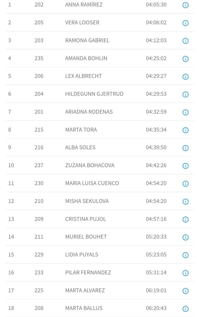 En la prueba femenina de nuevo volvió a brillar Anna Ramírez, quien volvió a mantener un interesante duelo con la namibia Vera Looser. Al final la catalana se mostró superior y entró en meta con 32 segundos sobre su rival. La tercera plaza fue para Ramona Gabriel, lejos de las anteriores, a 5 minutos y 57 segundos. Ariadna Ródenas (Kenza) ha entrado en el puesto séptimo.